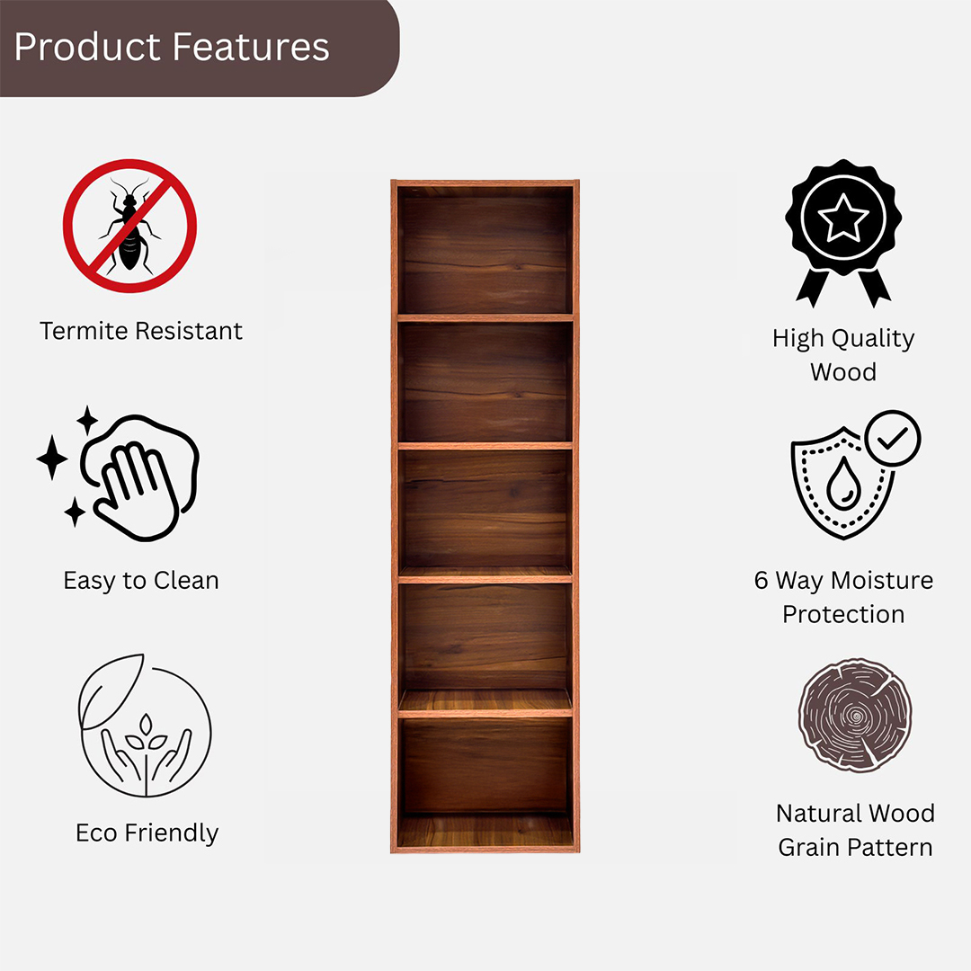 KIK Opera 5ft Open Book Shelf (Finish Color – Leon Teak, Knock Down)
